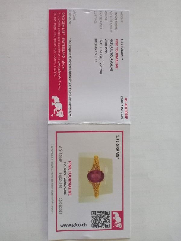 Tourmaline from Mozambique - stone shape: oval - measurements: 6.61 x 4.81 x 3 mm - total weight: 1.25 grams - size 54 - with GFCO certificate (Swiss laboratory) AD13094P