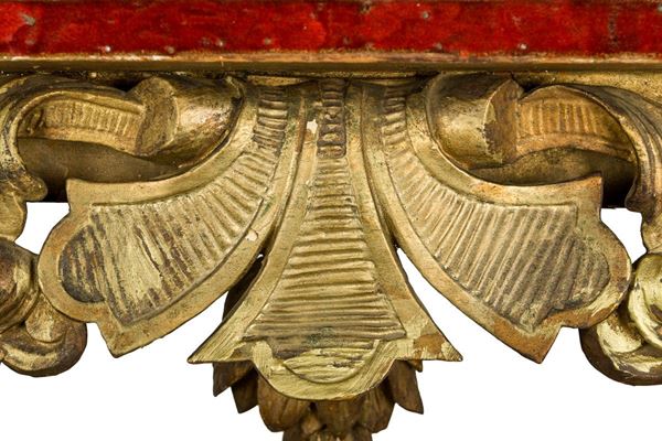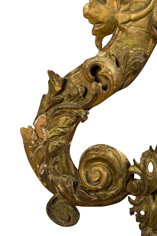 composed of two large scrolls decorated with floral garlands, lined in red velvet, defects and shortcomings