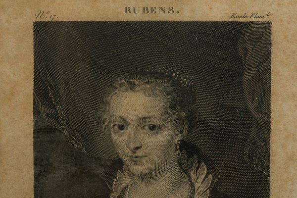 etching by Lacour, from a painting by Rubens, with spots