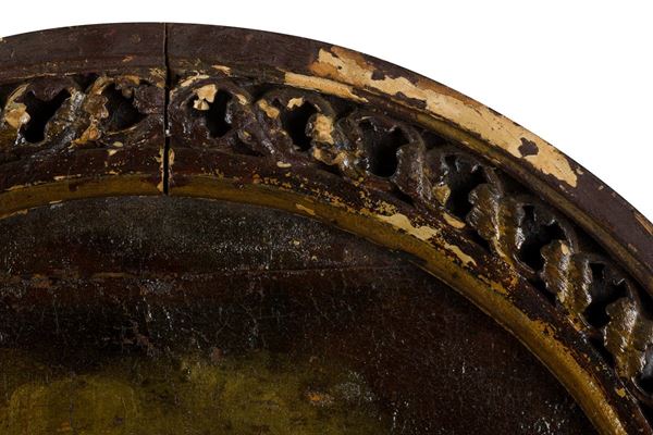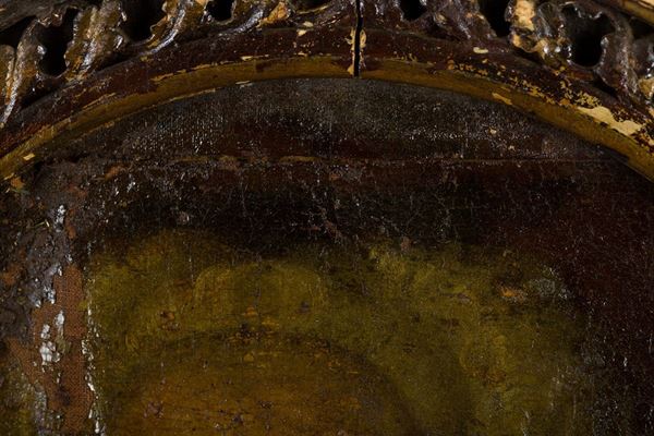 The painting, which shows an ancient relining, has large areas with falls and a deep cut in the upper part of the canvas. On the frame there is an inscription with the catalog number of a previous collection location.