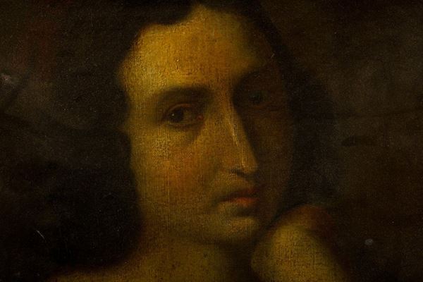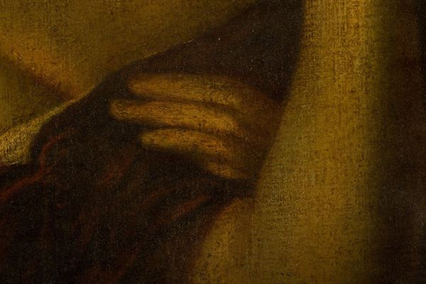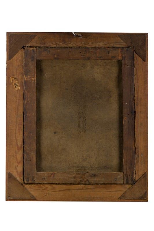 The canvas, in which the imprint of the frame can be seen, is wavy. The pictorial texture is slightly impoverished. Spots and a small cut in the upper left are visible. In a gilded frame