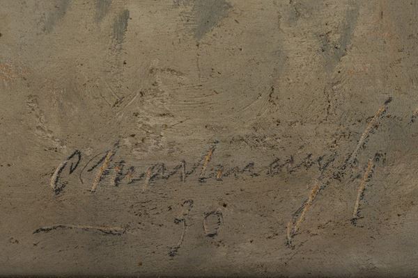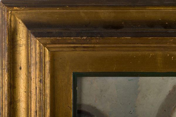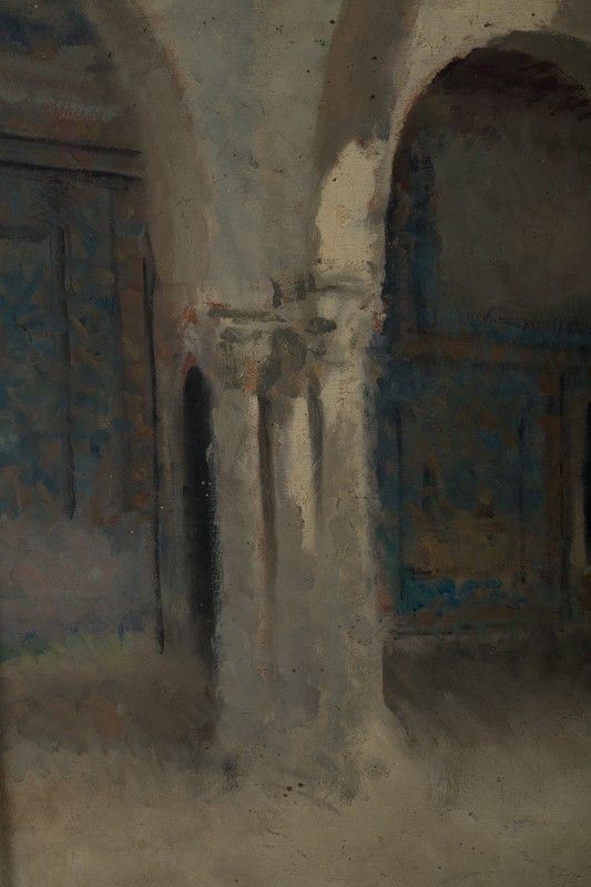 The painter, present at the 1935 Milan Social Exhibition, organized by the Society for Fine Arts and the Permanent Exhibition of Milan, specializes in views of historic and sumptuous interiors. The painting is signed, framed, from Galleria Pesaro