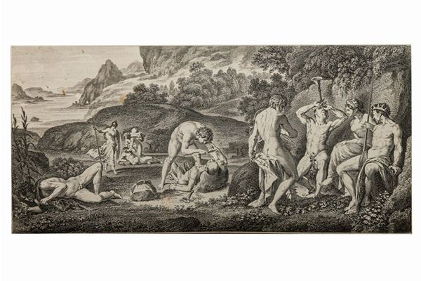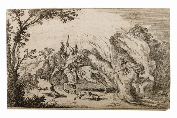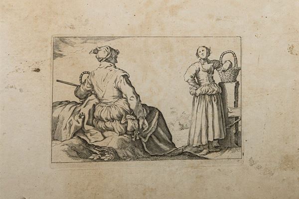 Group of twelve prints depicting scenes of various characters, XVIII-XIX century