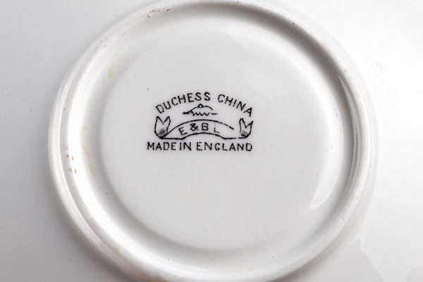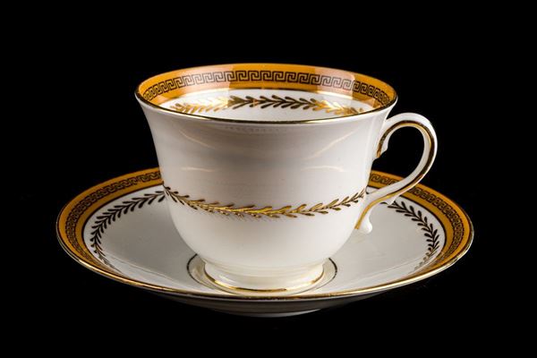 English tea set consisting of 4 saucers and 4 cups. Finely decorated also internally, in black and gold.