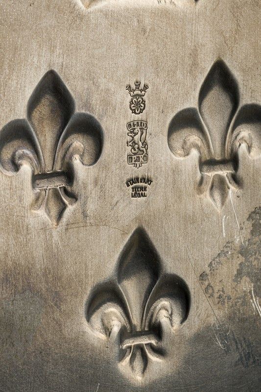 with embossed noble coat of arms, marks on the back