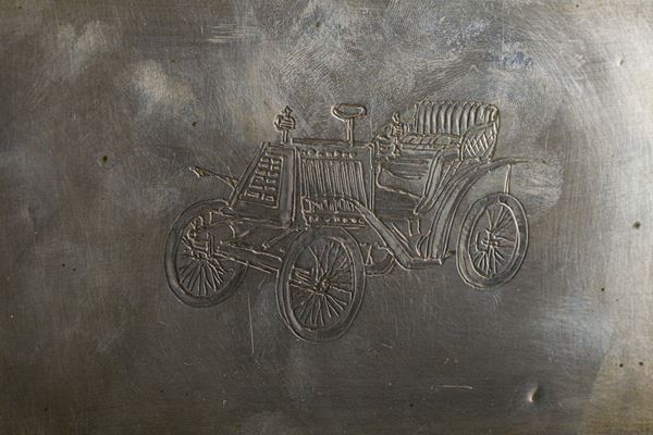 Cover engraved with a vehicle drawing, small defects