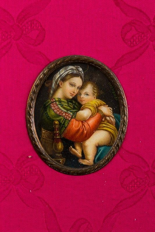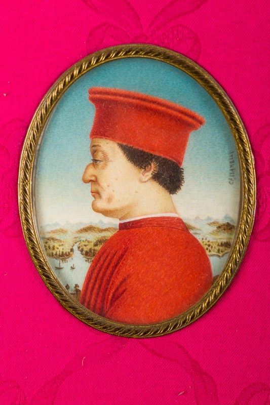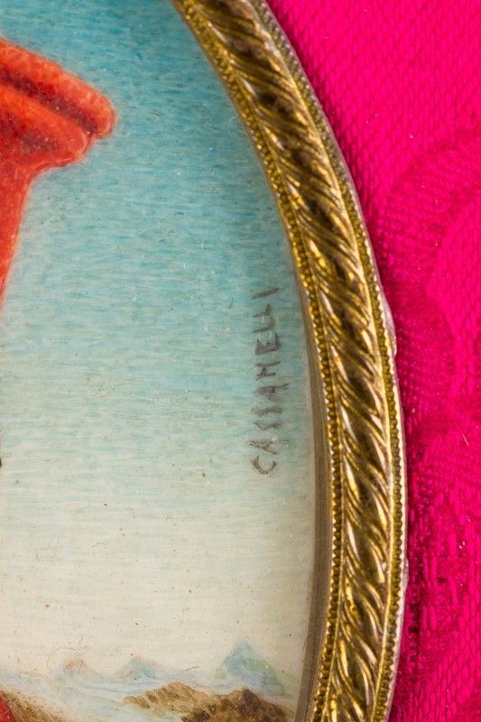 Three miniatures depicting self-portraits of Raphael, Michelangelo and Leonardo, signed Cassanelli.