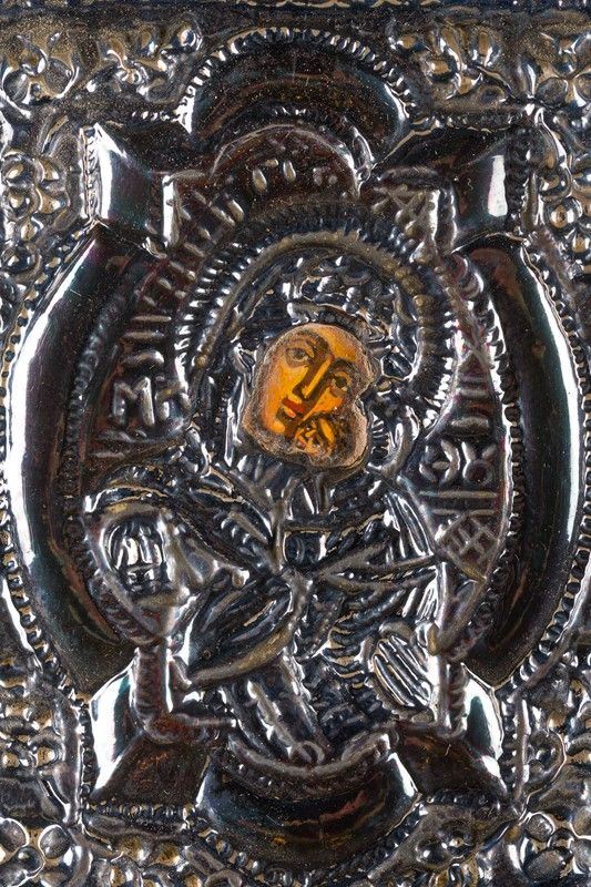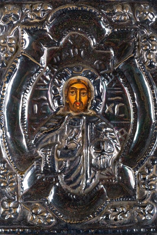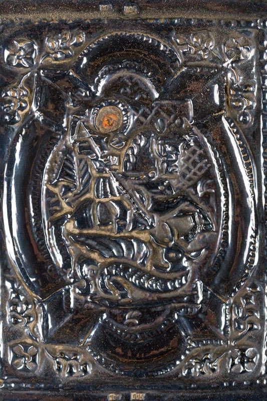 The icons depict: Madonna with Balmino; Christ Pantocrator & and St. George defeats the Dragon.