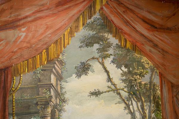 decorative panel, possible scenographic backdrop, color drops at the edges