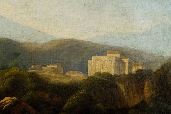 The painting analyzed under Wood's lamp shows some ancient repainting in the lateral parts of the sky