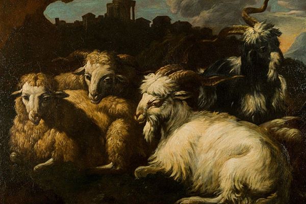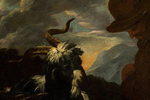 The painting probably dates back to the years in which the famous painter moved to Tivoli, after a brief Roman passage, then around the 1690s: here you can see the Temple of Vesta together with other stylistic features typical of his production of those years such as the goat with curved horns and the intense yellow-brown lighting effects.