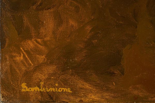 signed on the lower left, exhibited at the exhibition "The 4 elements: Air, Fire, Earth and Water" (Bologna, 2014)