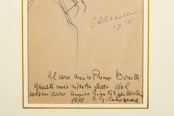 signed and dated, framed. At the bottom a dedication by G. Calognese