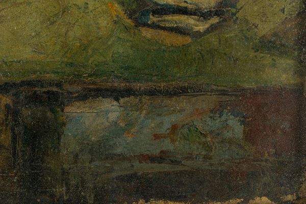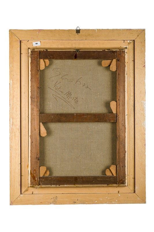 Signed on the back. Relined, color drops at the edges. Framed