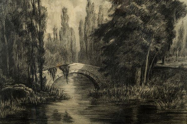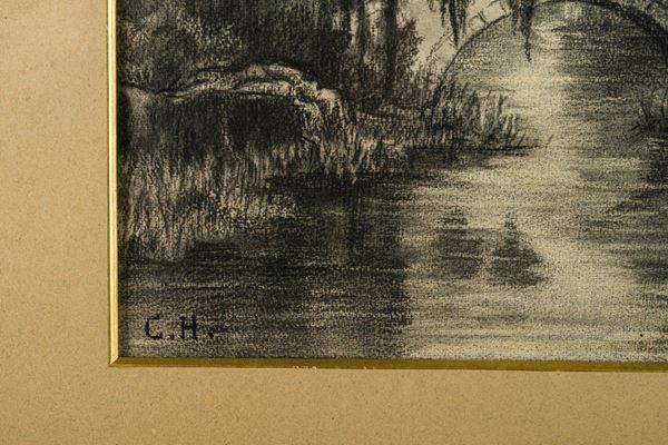 The drawing, monogrammed C. H., is made on watermarked paper by Léon Berville, who ran the well-known family business from 1870 to 1895. It can be deduced that the painter made the drawing during these years. The stylistic proof is equally clear: the trait is easily ascribable to the painters of the Barbizon School, of which our Master could be defined as a late follower.