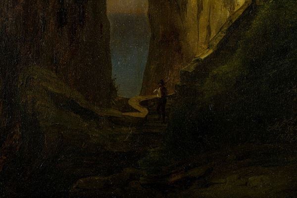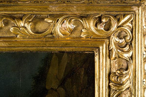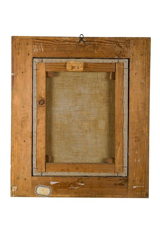 The painting bears the inscription at the bottom right: M. C. Fecit 1856. On the back, the old small panel shows said informations.