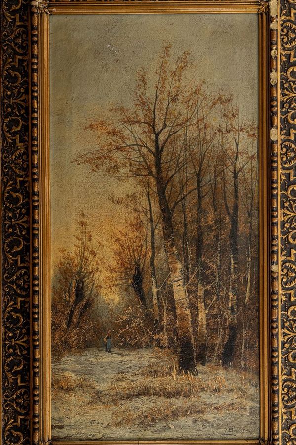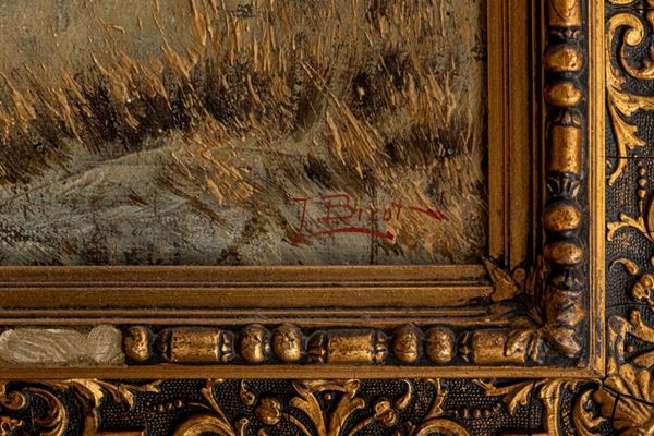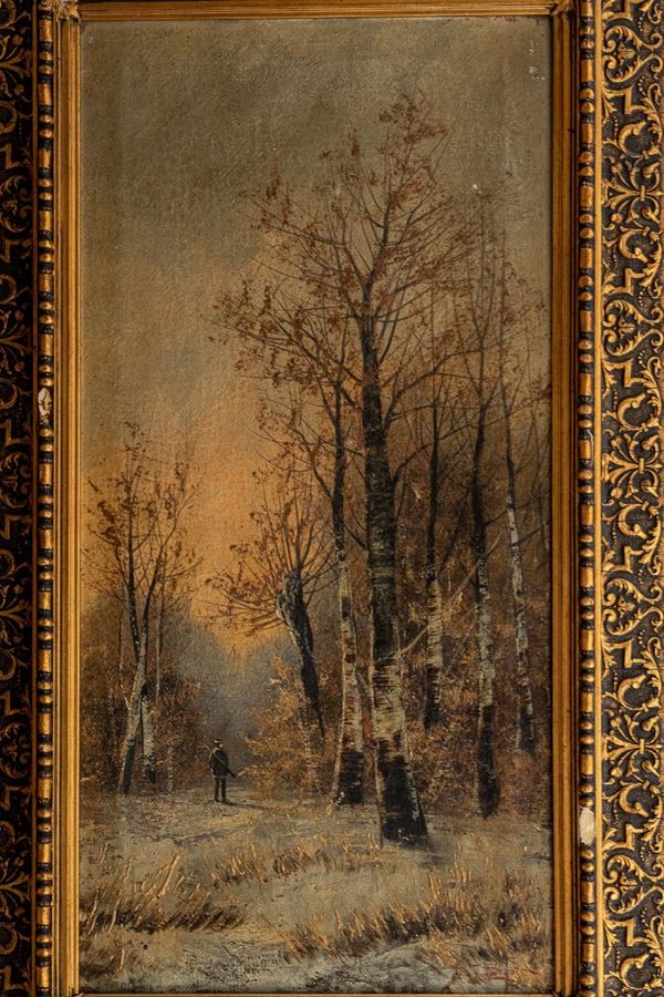 Pair of winter landscapes with figures, France, late 19th - early 20th century