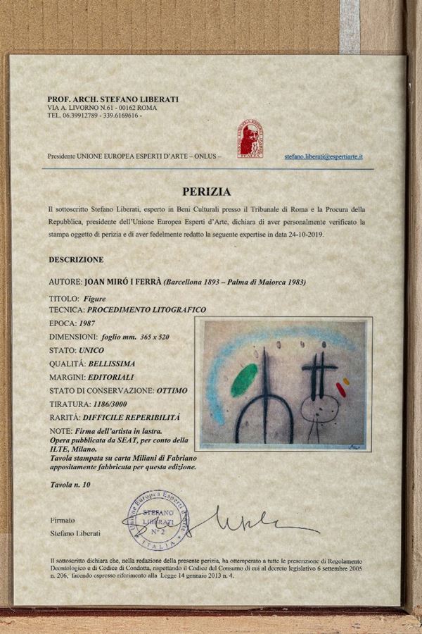 Edition: 1186/3000 Signature of the artist in the plate. Work published by SEAT, on behalf of ILTE, Milan. Plate printed on Miliani di Fabriano paper specially manufactured for this edition. Table n. 10. Framed. On the back it presents the report of Professor Stefano Liberati.