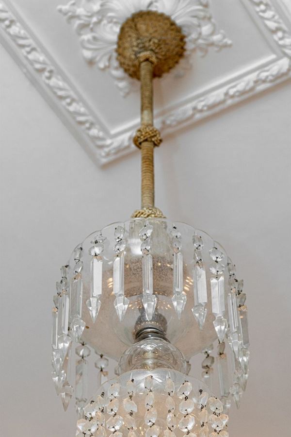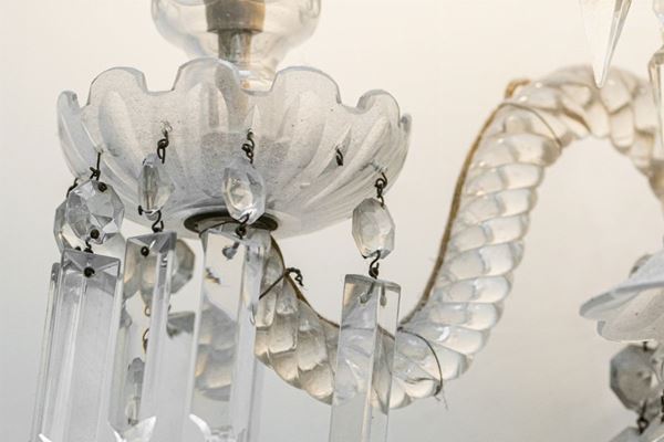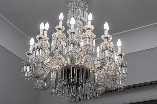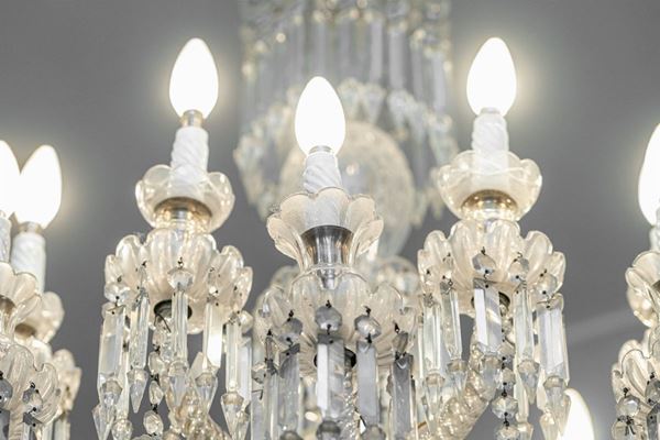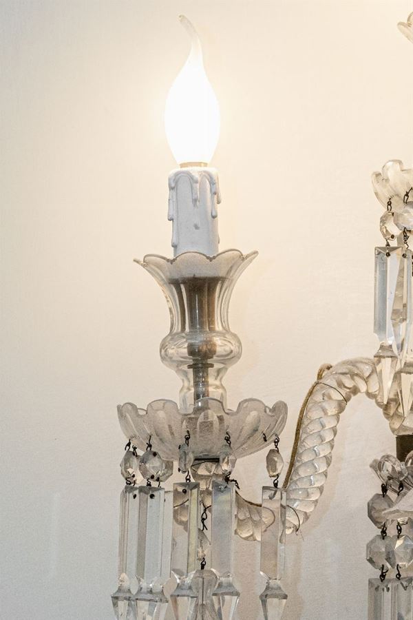 in Bohemian crystal (approx. 120 x 80 cm) with four 3-light appliques (70 x 40 cm). The object can only be viewed in the photo and must be collected directly from the owner's house, by appointment (Rome)