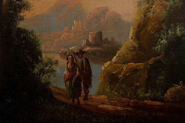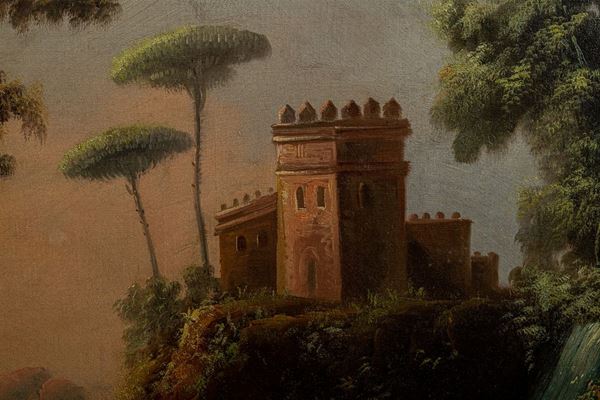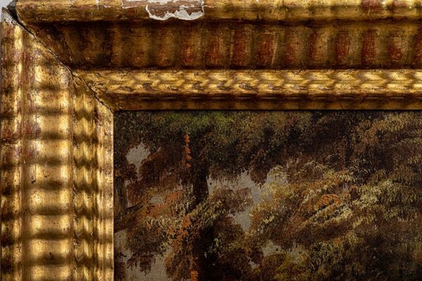 within a coeval frame in gilded wood. Canvas reupholstered and restored. Lack of gilding in some points of the frame.