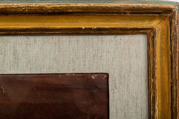 The painting, on first canvas, has several color drops and the sign of the frame. Framed.
