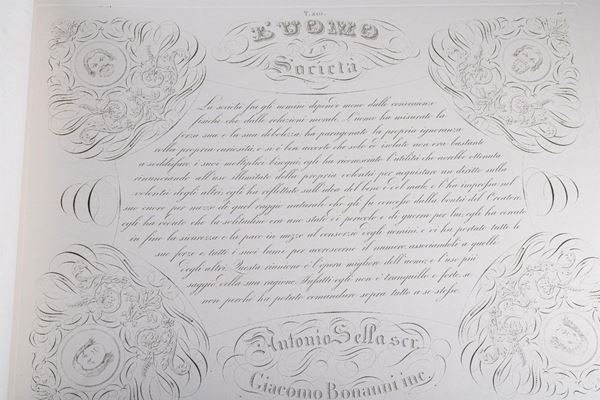 Calligraphy by Antonio Sella Romano. Engraved by Giacomo Bonanni, 1840