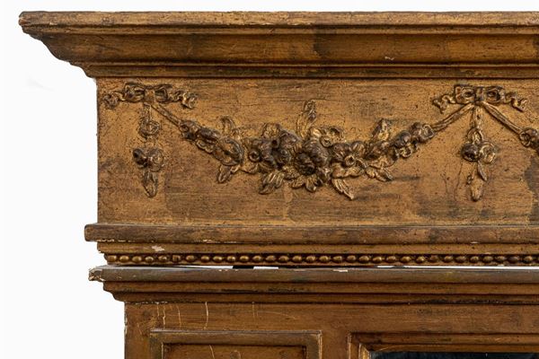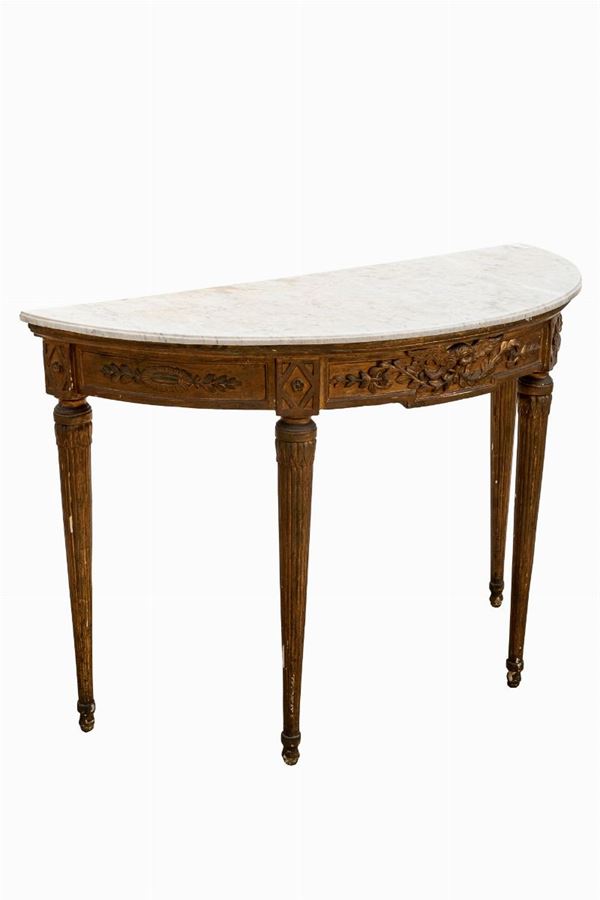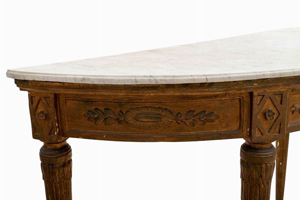 Crescent console with mirror, Italian manufacture, first half of the 19th century