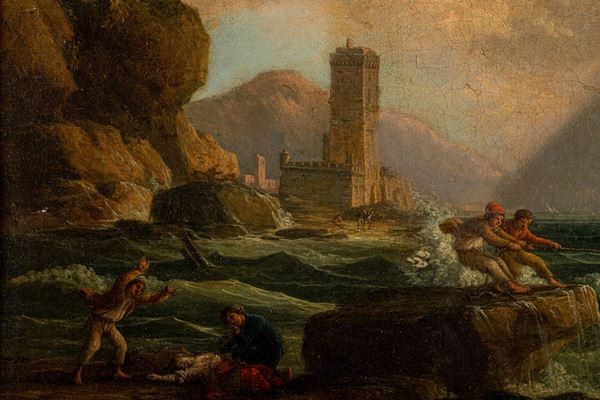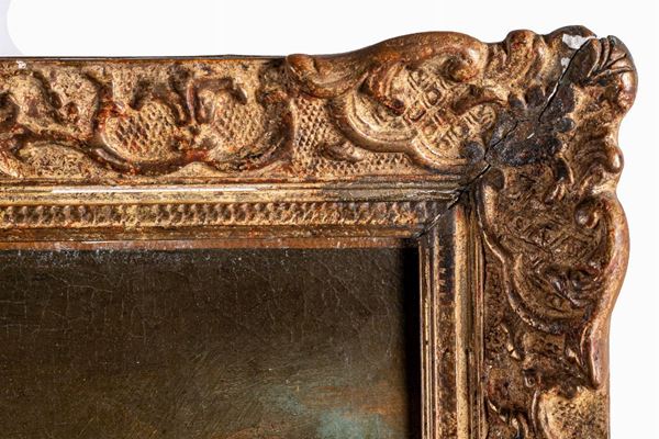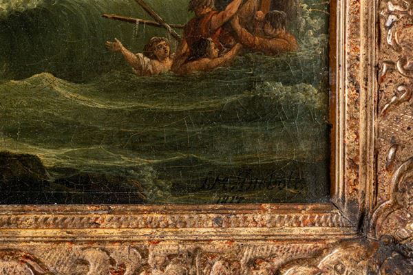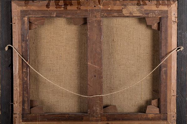 The painting, signed and dated in the lower right corner, has no repaintings. There is a network of cracks on the entire pictorial surface. Framed.