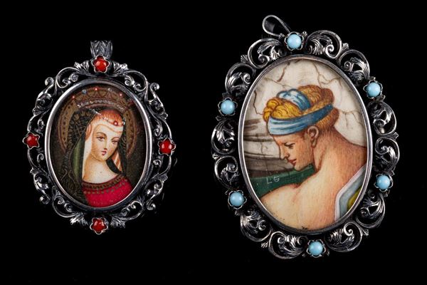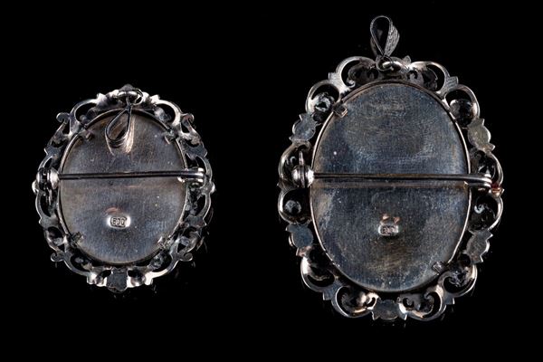 Lot of two brooches / pendants in 800 silver, 20th century