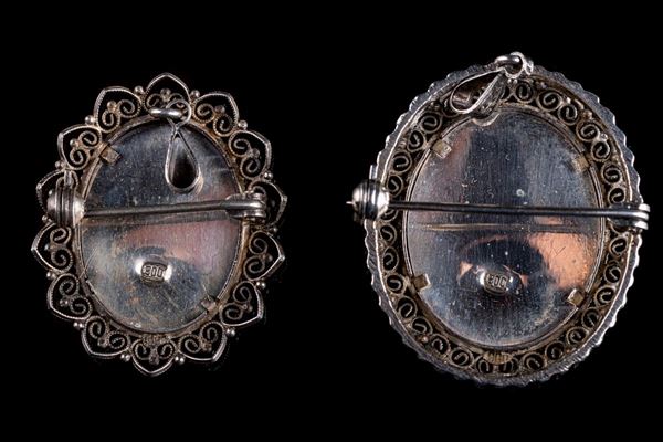 Lot of two brooches / pendants in 800 silver, 20th century