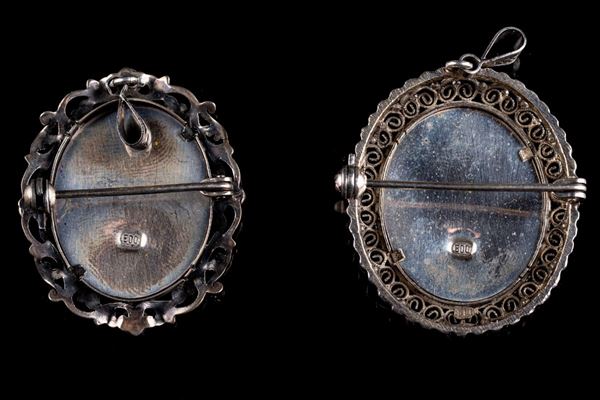 Lot of two brooches / pendants in 800 silver, 20th century