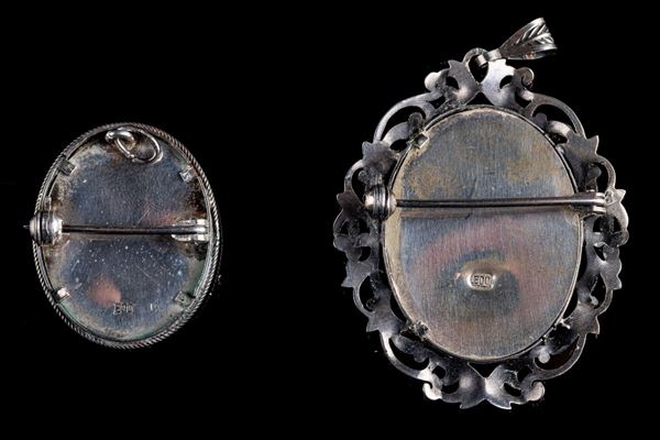 Lot of two brooches / pendants in 800 silver, 20th century