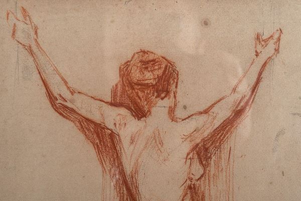 20th century Academy Painter - Study for a female nude from behind, 20th century