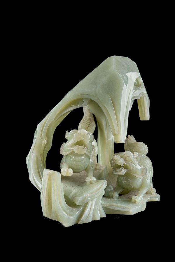 Sculpture in volume - pair of Fo dogs in a cave, China, second half of the 20th century