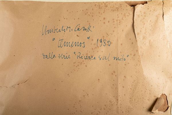 The work presents on the reverse (on paper) the words Umberto M. Casotti, the title and the date of the composition taken from the series "Research on the myth".
