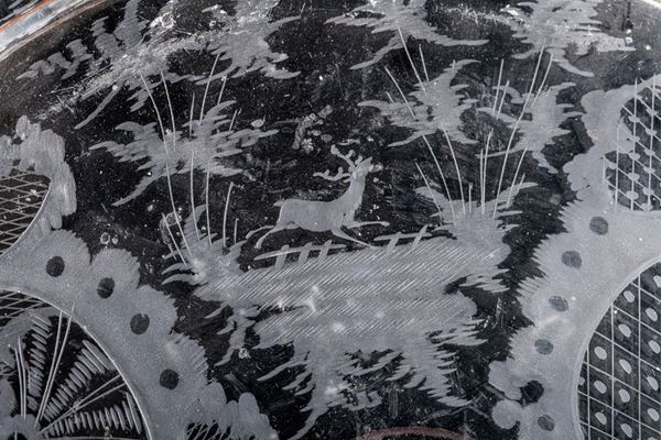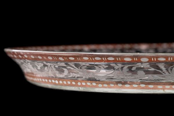 Dessert tray in ground and painted glass, venice first half of the 20th century