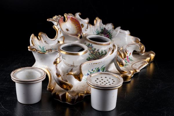 Inkwell in white porcelain, France, late 19th - early 20th century
