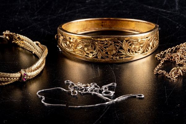 composed of two bracelets and two necklaces in 750/1000 gold, parts in low gold. Weight: 79 gr