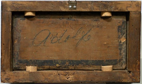 Oil on paper applied to an ancient panel