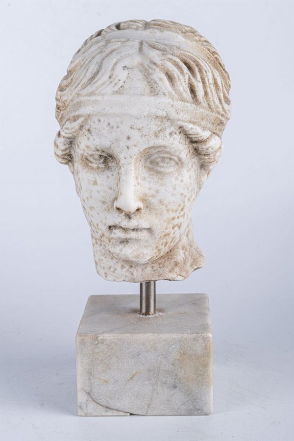 Sculpture in volume in Carrara marble on a non-coeval base in Carrara marble.