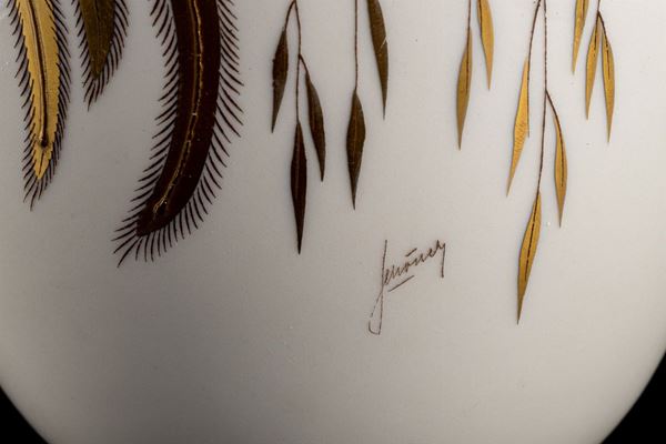 with pure gold finishes and decoration with Bird of paradise on raceme. Reconstituted lid. German manufacture, Bavaria