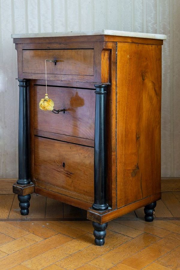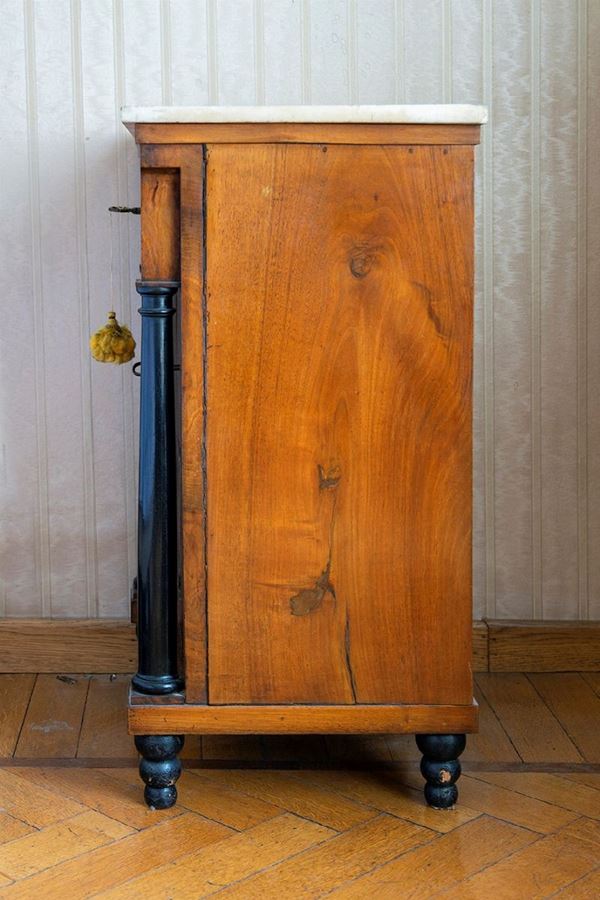 in walnut with 3 drawers, top in white marble, overlapping onion feet, with ebonized column. The object can only be viewed in the photo and must be collected directly from the owner's house, by appointment (Rome)