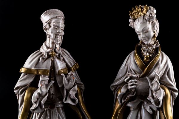Sculpture in volume in white porcelain and pure gold, signed on the base. Defects and shortcomings.