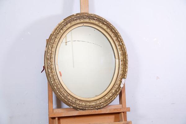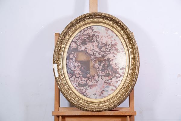 oval-shaped, in gilded wood and putty. Small defects and shortcomings.