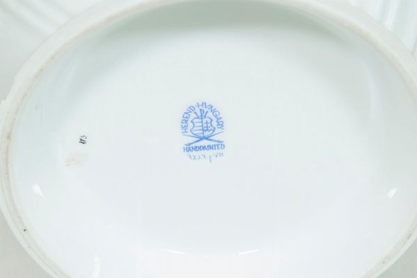 in white porcelain with floral and animal decoration and pure gold finish. Herend production.