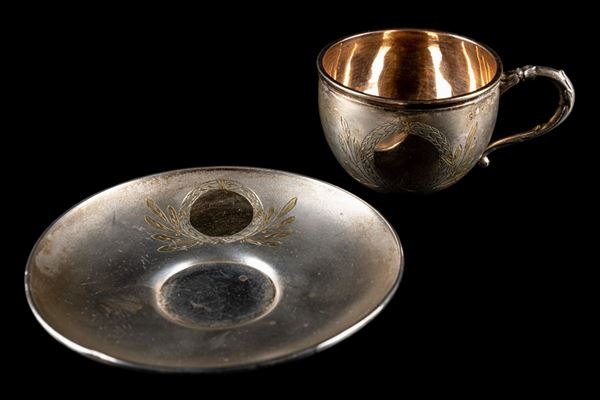 consisting of 2 cups with saucers, shell-shaped handbag and cheese bowl. Net weight: 430 gr