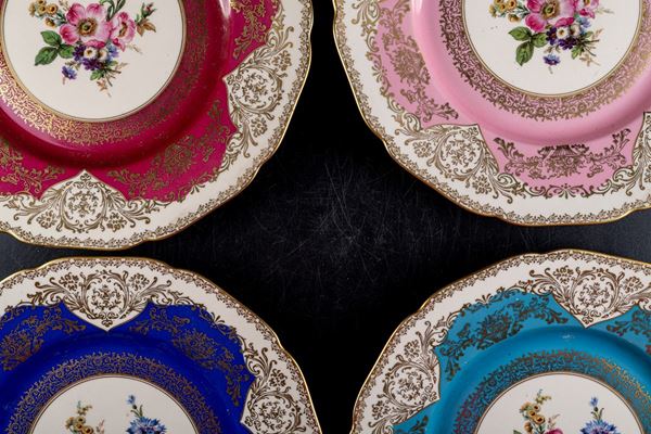 In polychrome porcelain, polylobed edge, with central floral decoration within pure gold reserve. Gold finishes. Brand at the base.