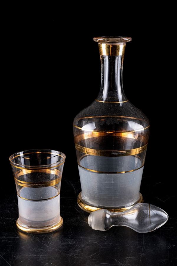 Lot of 5 glasses and a bottle, Italy, mid-20th century