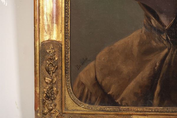 First canvas painting, signed on the lower left, within a non-contemporary gilt wood frame.