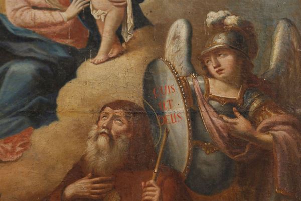 Madonna with Child between San Vito Martire, San Francesco da Paola and San Michele Arcangelo, Marche school, late 17th - early 18th century